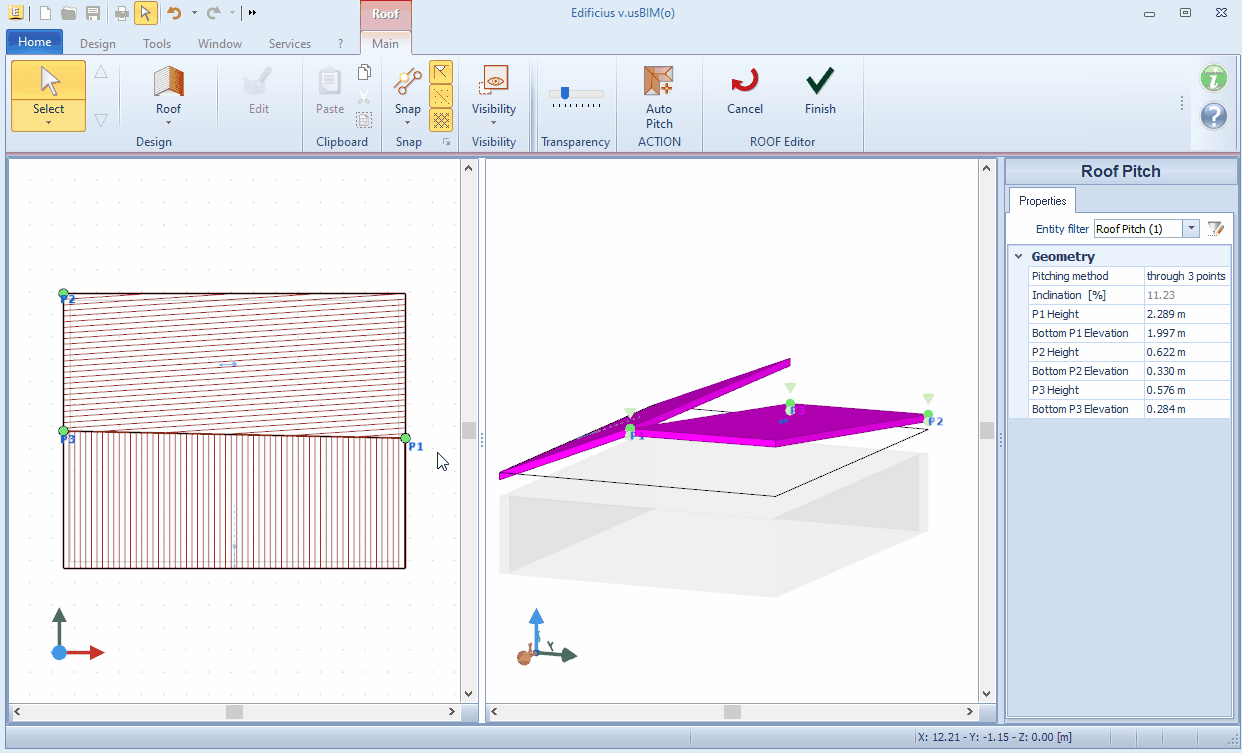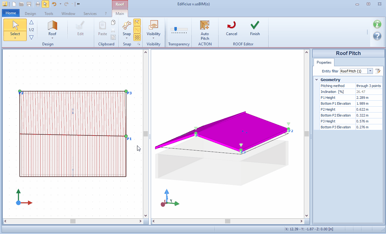 Patrizio | Roof: the slopes' vertices have incorrect heightPatrizio 2025-09-25 12:37:36 Here's another interesting technical support case that may be of use to our users REQUEST how to proceed when closing the roof editor the error message appears ![]() Answer: In closing the Roof editor, some checks are carried out on the modeling of the slopes and consequently on the correct closure of the Roof. One of these controls concerns the altitude at which the vertices of two adjacent slopes are placed. If two or more slopes adjacent to each other do NOT have vertices at the same altitude, a special message tells us the anomaly. The check is carried out, however, only if the difference in height between the apexes of the slopes is less than or equal to 5 mm. Otherwise, no anomaly is reported. By confirming the message, you can exit the editor, but the flap or flaps subject to the error will not appear in the 3D model and will be reported as in error (click HERE to view an image). To complete a correct modeling of the Roof, it is necessary to solve the anomaly reported. To do this, CANCEL the message and make a magnification in the 3D view near the vertex in error, so that you can see the difference in height between the two layers. By viewing the different heights between the two slope, it is necessary to determine below whether to raise one or lower the other slope (click HERE to view an image) and then change the height. However, we may be faced with different scenarios. In this case, it is necessary to proceed differently. SCENARIO 1 - REGULAR-SHAPED SLOPES In the case where the slope reported in the ERROR has a regular shape, i.e. the ridge and the eaves are parallel to each other, the inclination of the slope can be attributed by means of the "slope line". First, with respect to the slope that has been identified as to be "corrected", it is necessary to ensure that the upper vertex of the slope line is placed at the ridge's apex and perpendicular to it. If this is not the case, it is necessary to take the view in plan of the slope and change the position of the apex of the slope line , hooking it to the top of the slope and perpendicularly. (click HERE to watch the video) Corrected the position in plan of the slope line, it is necessary to take the 3D view and correct the height of the slope. To do this, you must select the top of the slope line and use the snaps to attach to the top of the adjacent slope table. Aligning the dimensions of the two slopes in this way. (click HERE to watch a video) SCENARIO 2 - IRREGULAR-SHAPED SLOPES In the event that the slope signal by the report has an irregular shape , i.e. the peak and the eaves are NOT parallel to each other , then the shape of the slope is trapezoidal, or they have a triangular shape , to incline the surface, the slope "must be defined by three points". To change the slope type of the roof, select the slope line of the roof and in the Properties on the right, access the field "Definition type" and change from "slope line" to "by three points". (click HERE to watch a video) 3 points are shown in the plan view , for the roof for which we have changed the definition of the slope. You must select these points and place two at the top. (click HERE to watch a video) Next, go to the 3D view and for the roof, select a first point on the ridge and use the snaps to attach to the ridge of the adjacent slope. Repeat the operation also for the second point on the ridge. Aligning the dimensions of the two slopes in this way (click HERE to watch a video). The operation must be repeated for all slopes that have vertices with incorrect height. Once all the vertices have been positioned at the correct height, it is possible to terminate the Roof editor without any other signals. Watch the video of the video tutorial -----> How to align roof slabs Related Discussions : --> Roof: the summits of the slopes have the wrong position --> Roof: edge not properly covered --> Roof: overlapping slopes in error |